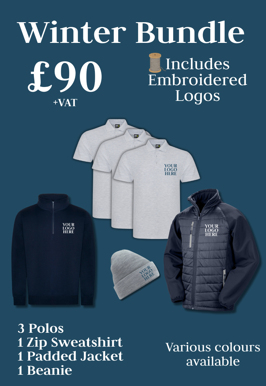 Our Winter Bundle contains everything you need to keep warm while at work this Autumn and Winter. All embroidered with your company logo.